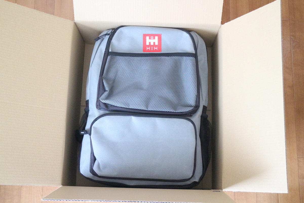 こんな風にリュックの中に全ての防災アイテムが入った状態で届きます。