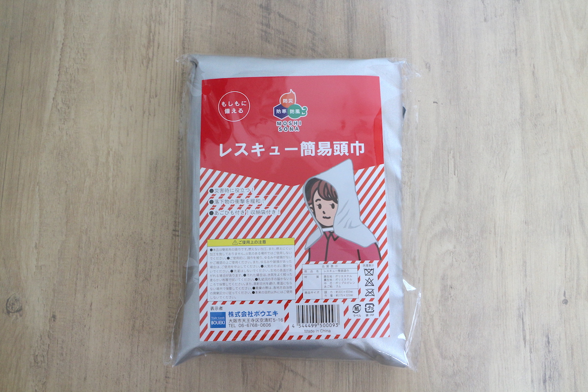 ただ頭を守るという意味では、あくまで簡易的な頭巾なので、別売りの帽子型簡易ヘルメットがあると安心かも。