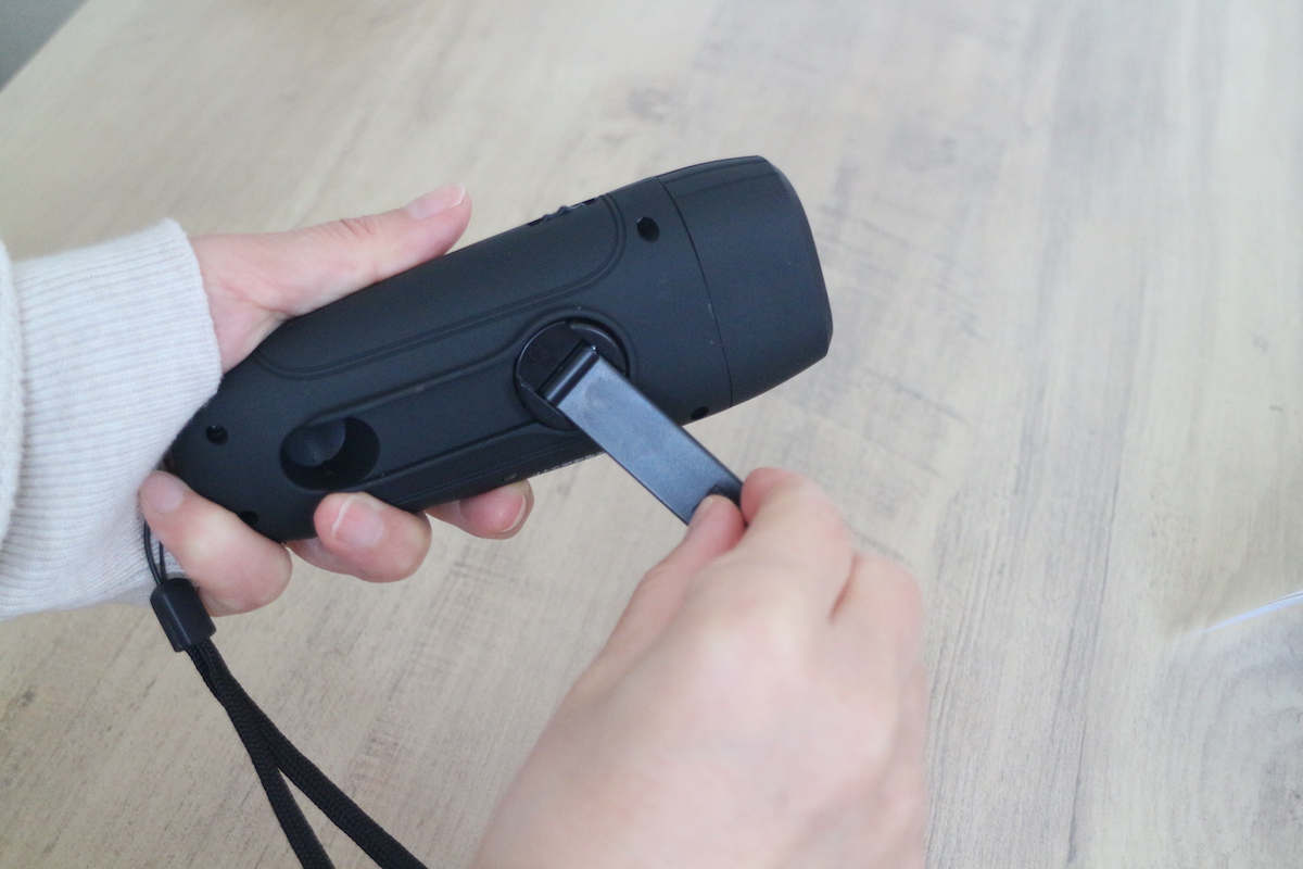 このアイテムのおすすめポイントは手回し充電ができるところ