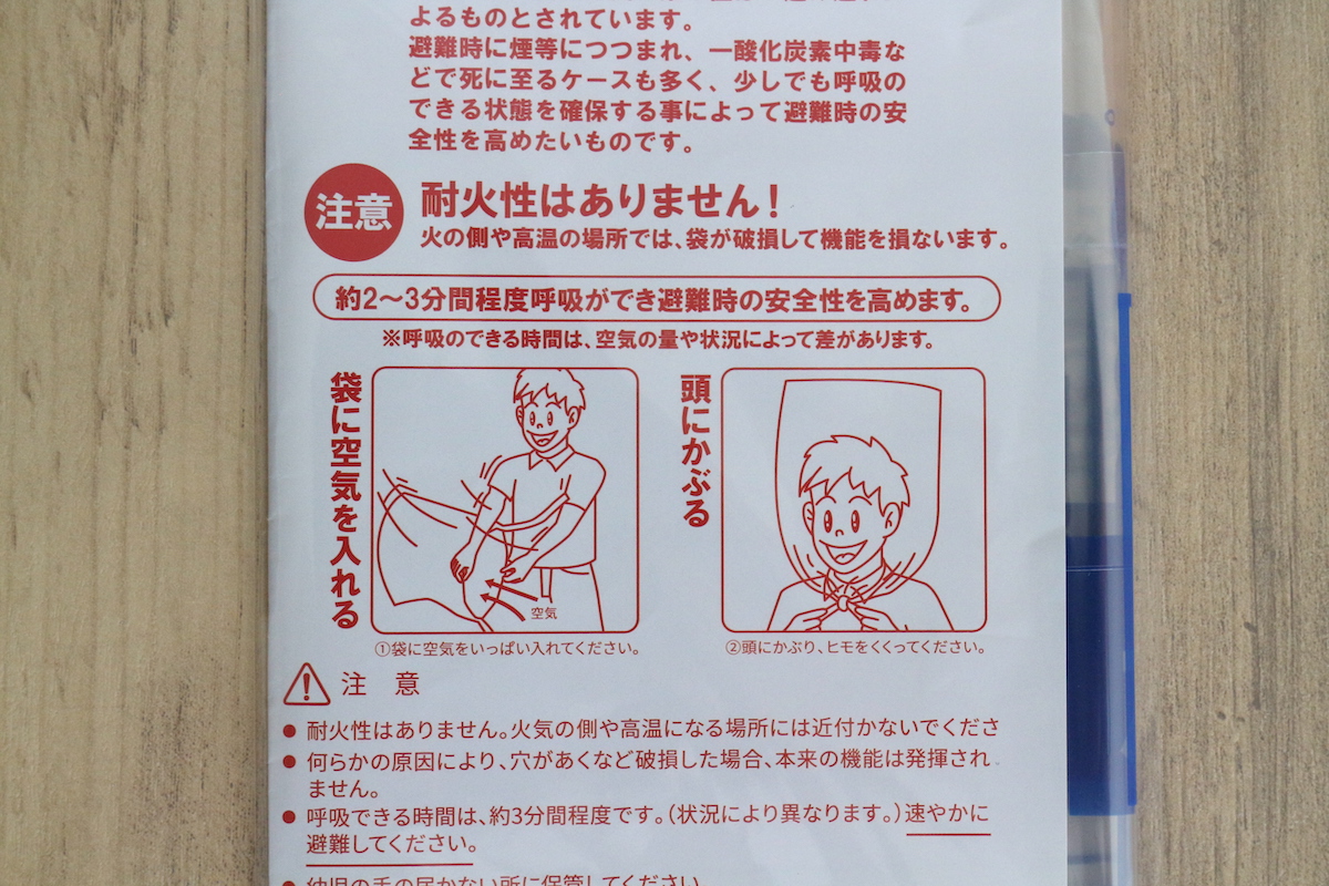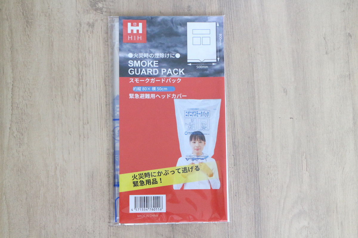 続いてはこちら、スモークガードパック(緊急避難用ヘッドカバー)