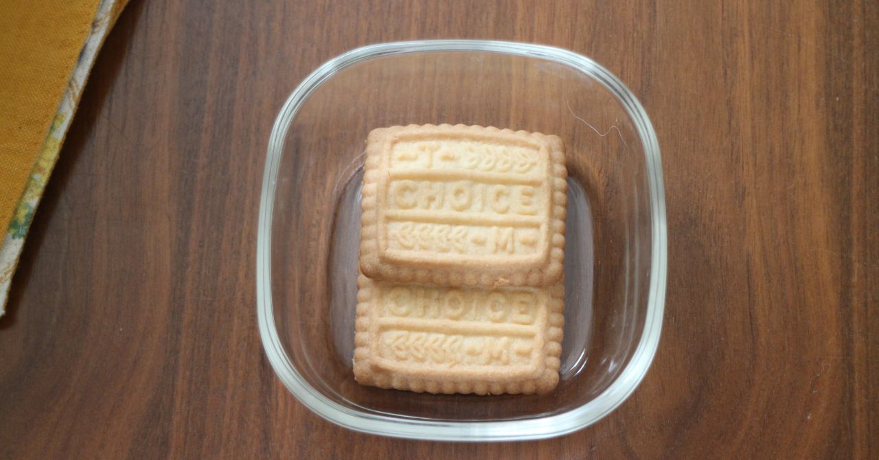 ガラス容器にチョイスを2枚敷いて