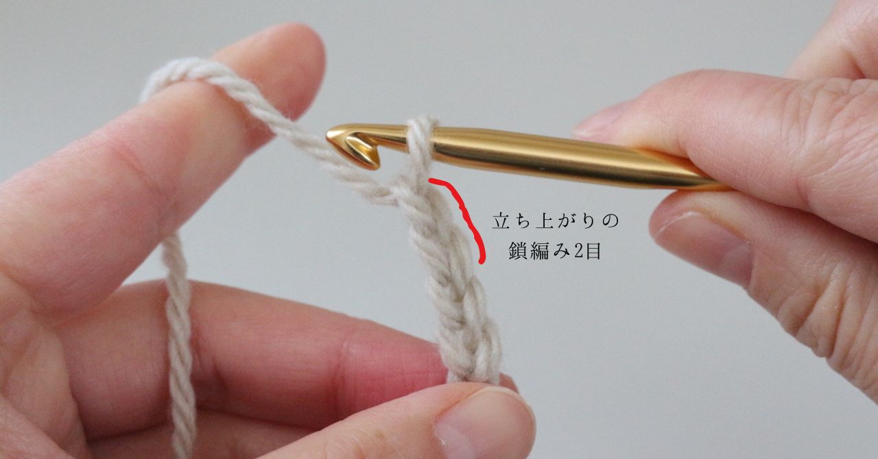 この2目を「立ち上がりの鎖編み」と呼びます。
