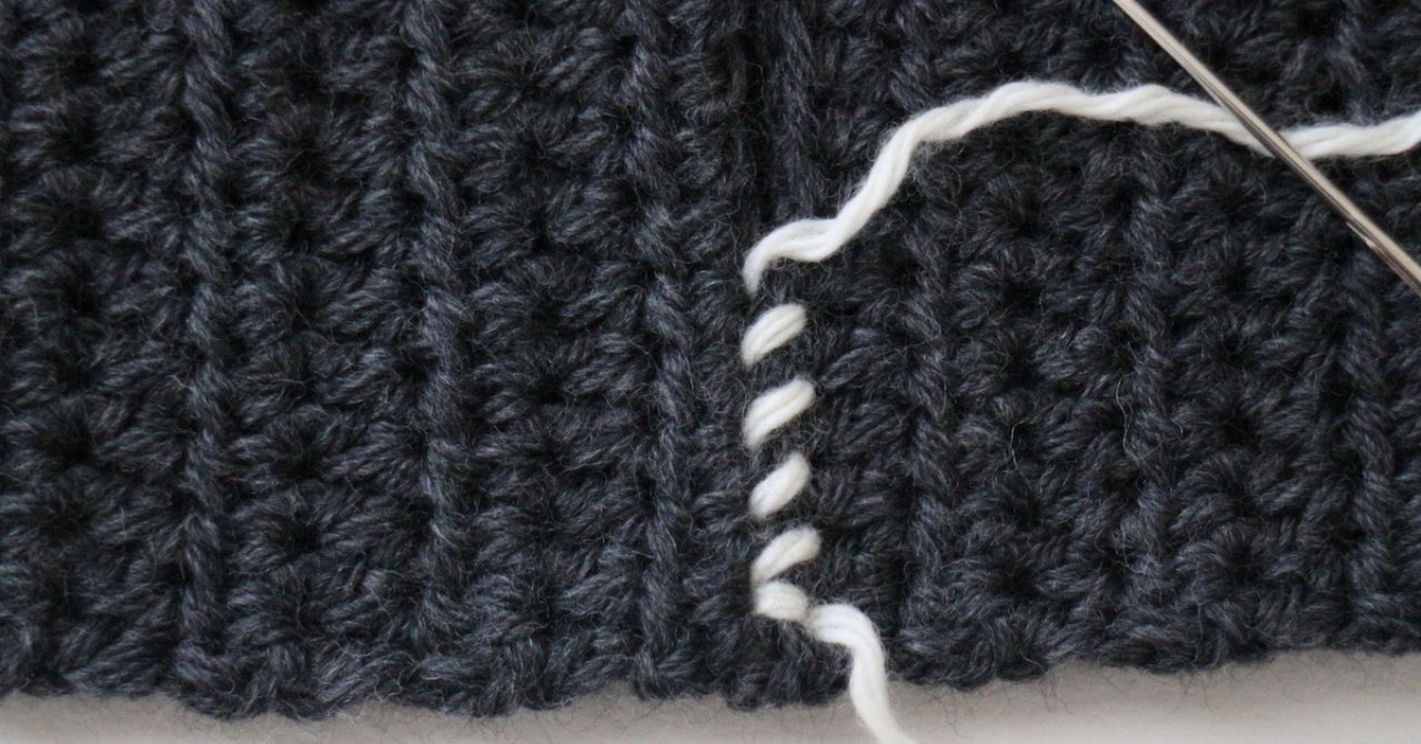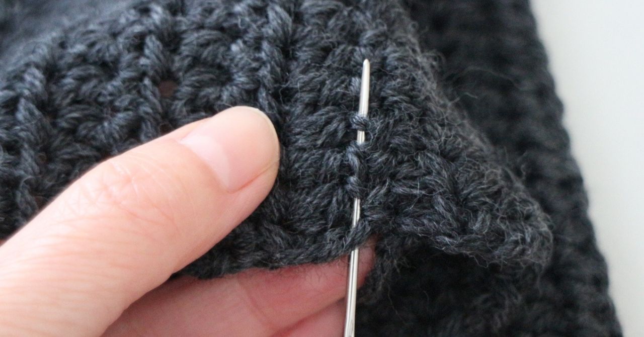 編み終わりの糸をとじ針に通し、編み始めと縫い合わせて輪っかにします。