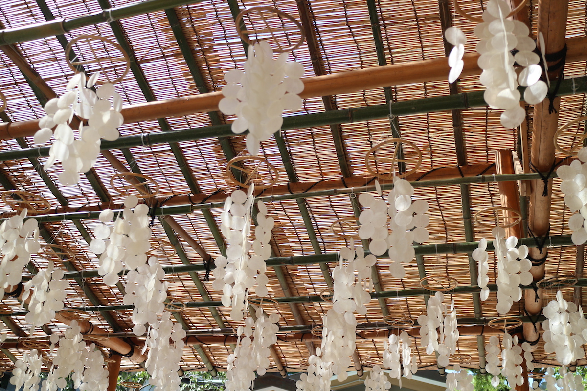 今回は、こんな貝殻の飾りつけがされていて、風が吹くたびにしゃらしゃらしゃらといい音がしていました。