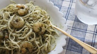 ひとりの夜の、ジェノベーゼパスタ ひとりで食べる夕ご飯 私はパスタを作ることが多いです。 今夜はえびのジェノベーゼパスタ。 見た...