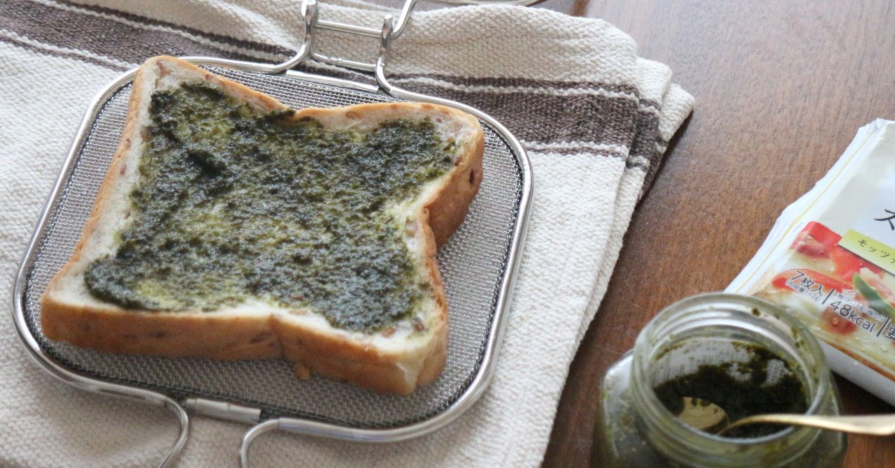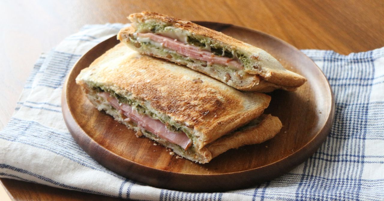 昨夜の夕食に使ったジェノベーゼソースでホットサンドを作りました。