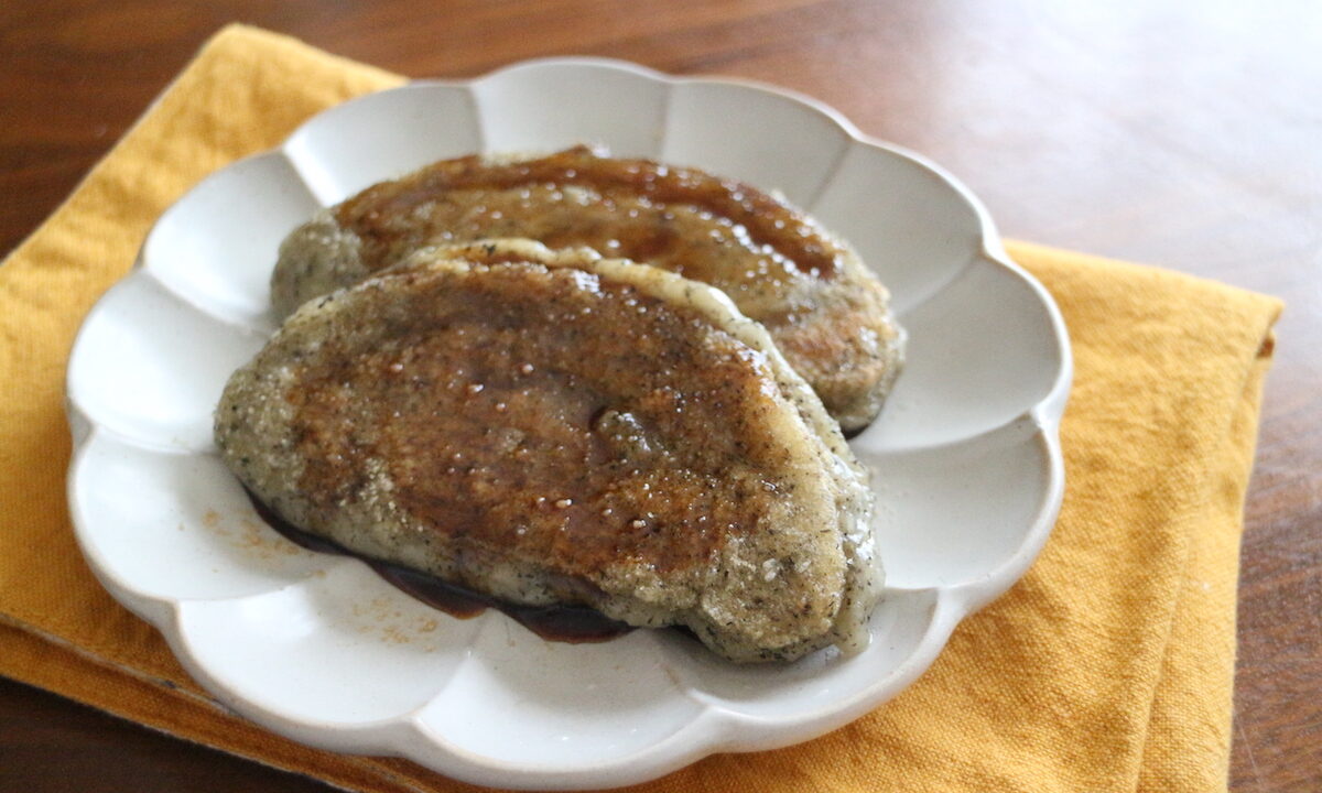 お餅を焼いて、砂糖とお醤油をかけて食べる。