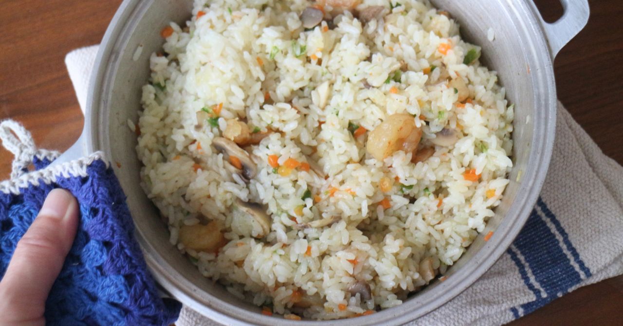 備蓄米をおいしく食べたい|えびピラフ風炊き込みご飯の作り方