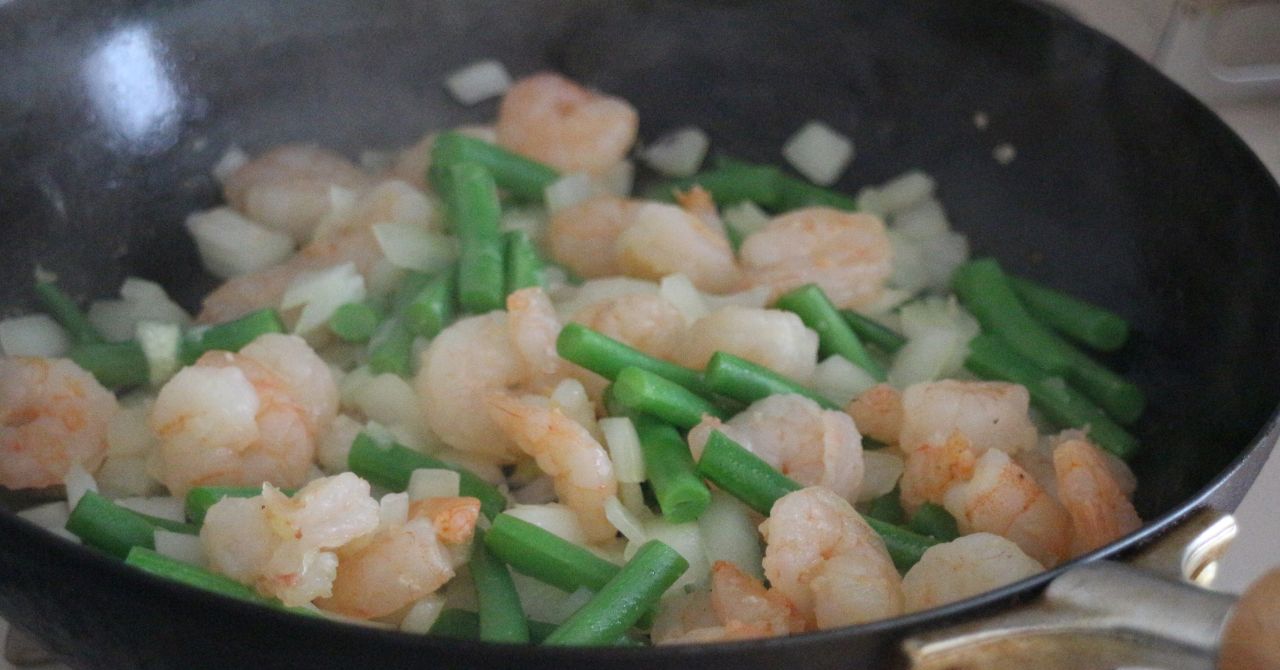 もちろん、ひき肉のガパオライスもよく作りますが、今日はえびが食べたい気分。