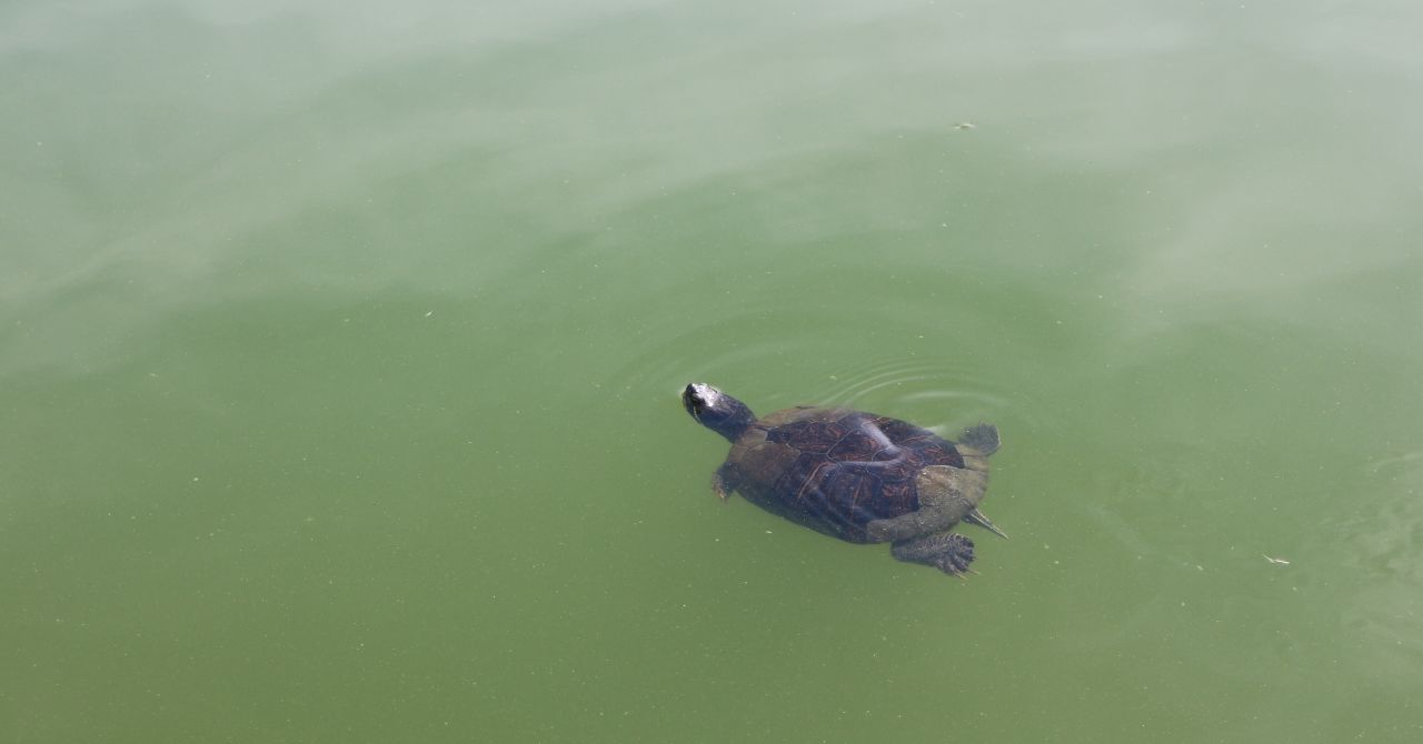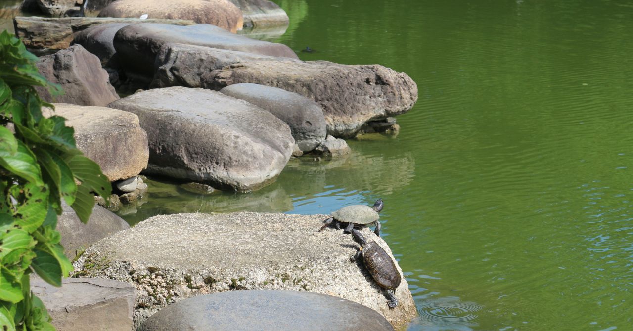 石の上でじっと動かないカメがいて、大丈夫かなあと見ていたら