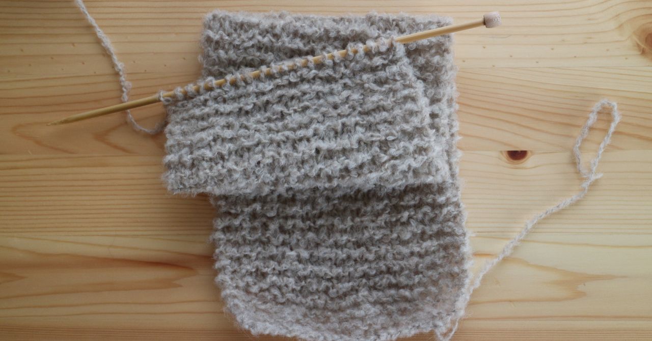 通し穴つきのミニマフラーの編み方を紹介したいと思います。