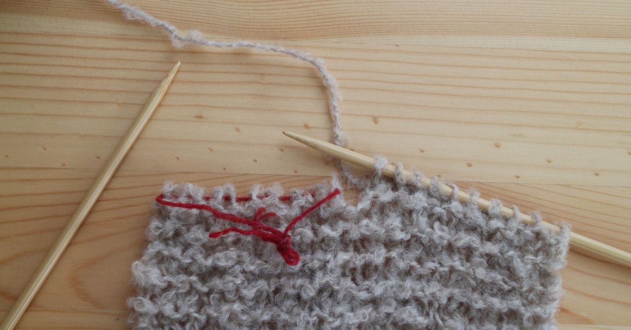 写真のように、編み棒を抜き、あまり糸を通しておきます。