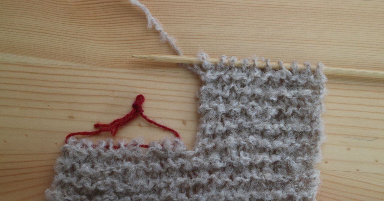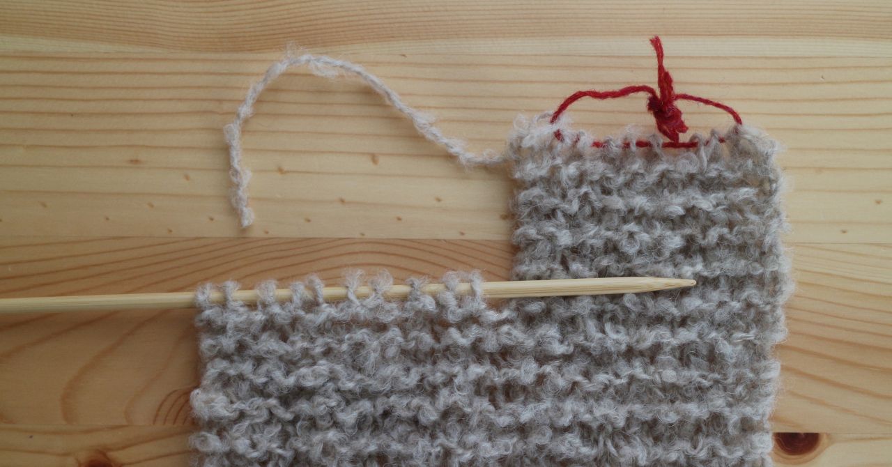 次の段は、最初の10目(右側)だけ編み、残りの10目(左側)は休ませます。