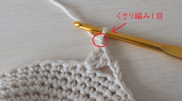 4.続けてくさり編みを1目編みます。