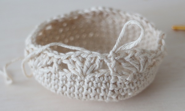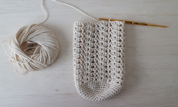 12.ちょうど良い高さまで編んだら、細編みで1周編みます。