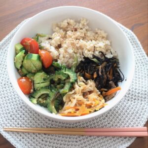 今日のランチは、作り置きおかずを合わせてワンプレートにしてみました。