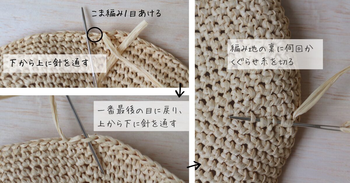 ここで編み終わりの糸の処理をしてしまいましょう。