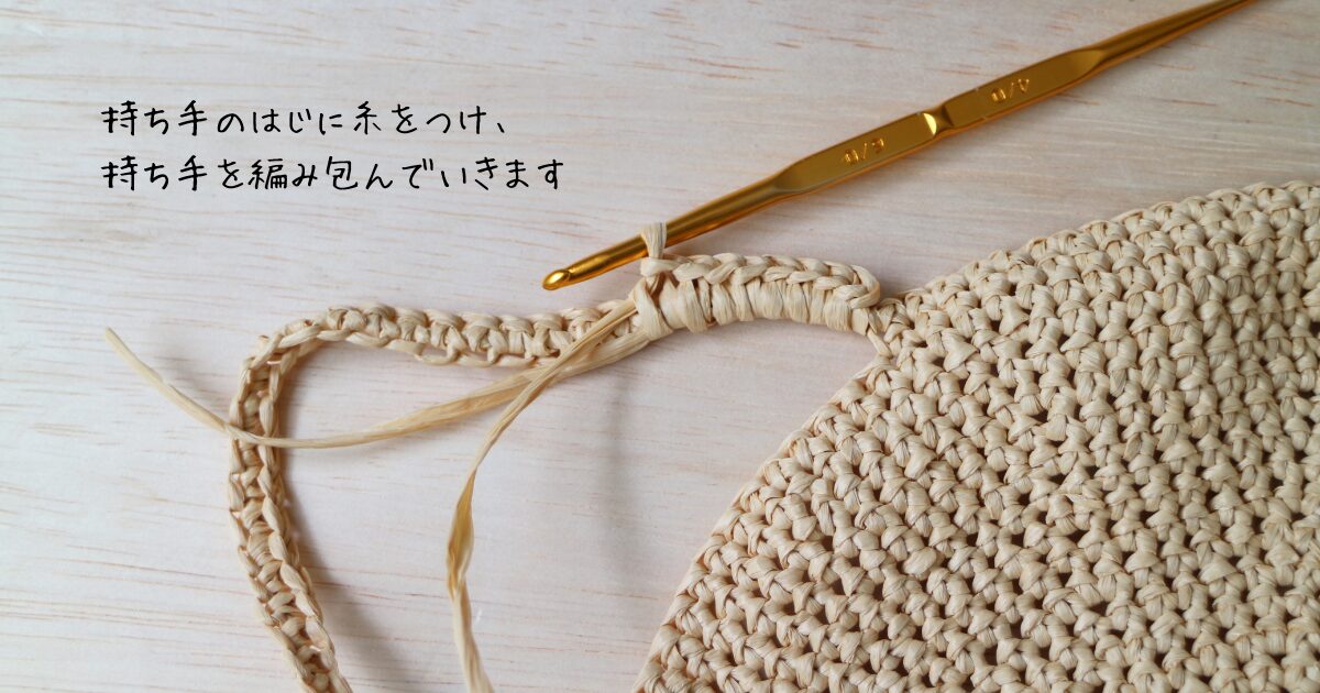 次に、持ち手の補強をするために、細編みで編み包んでいきましょう。
