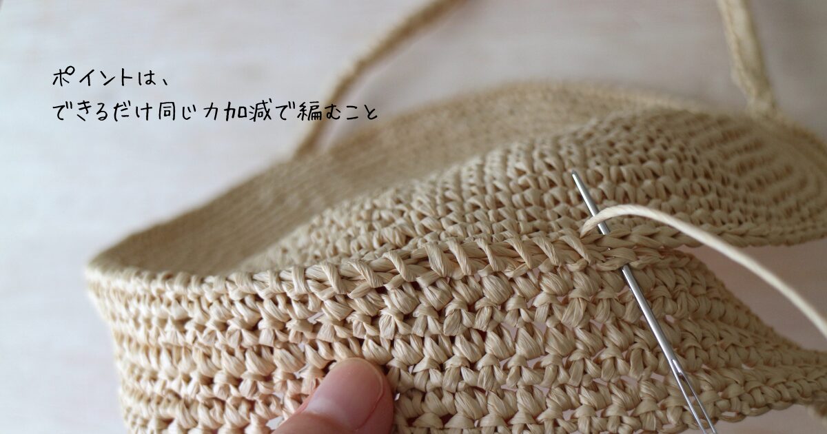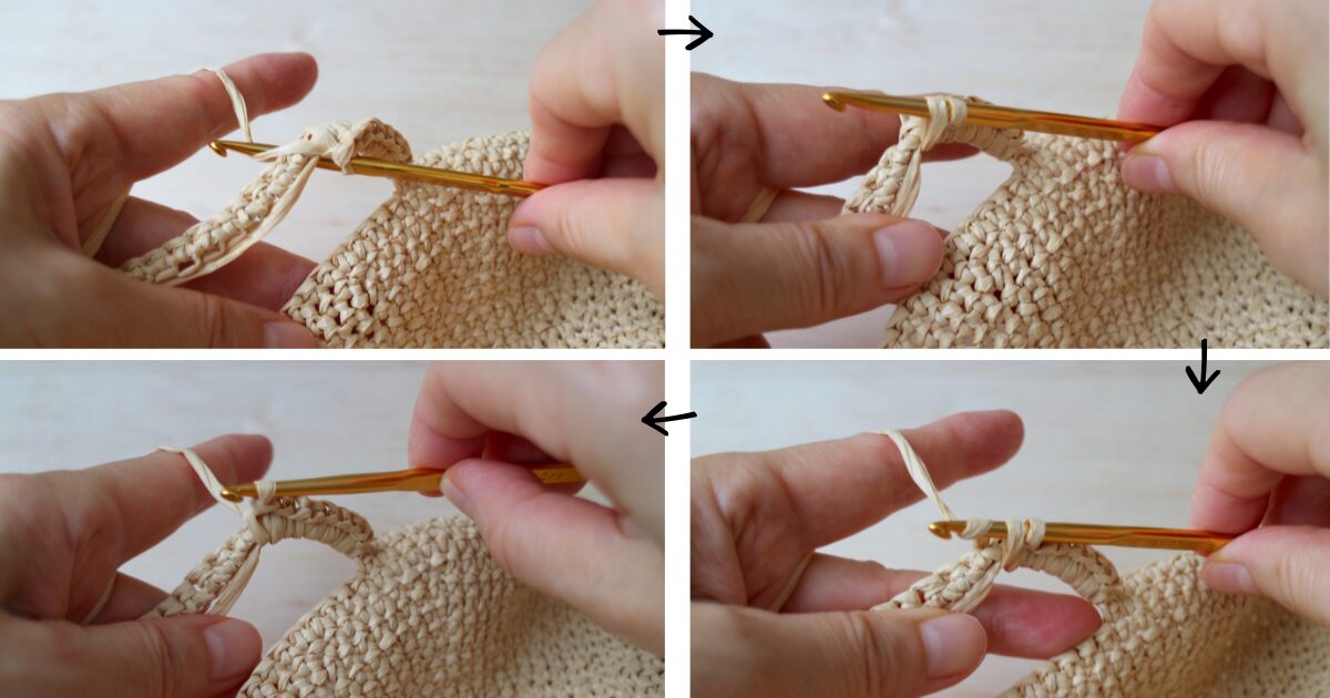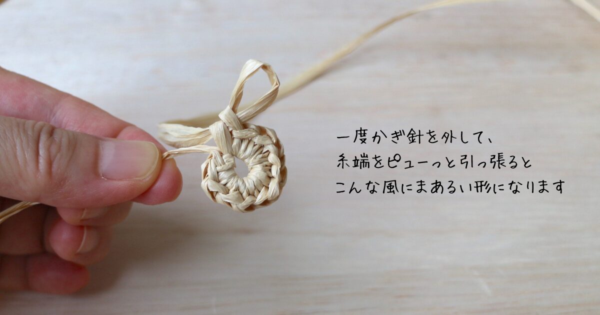 丸く編む方法は下記の記事で詳しく紹介しています。