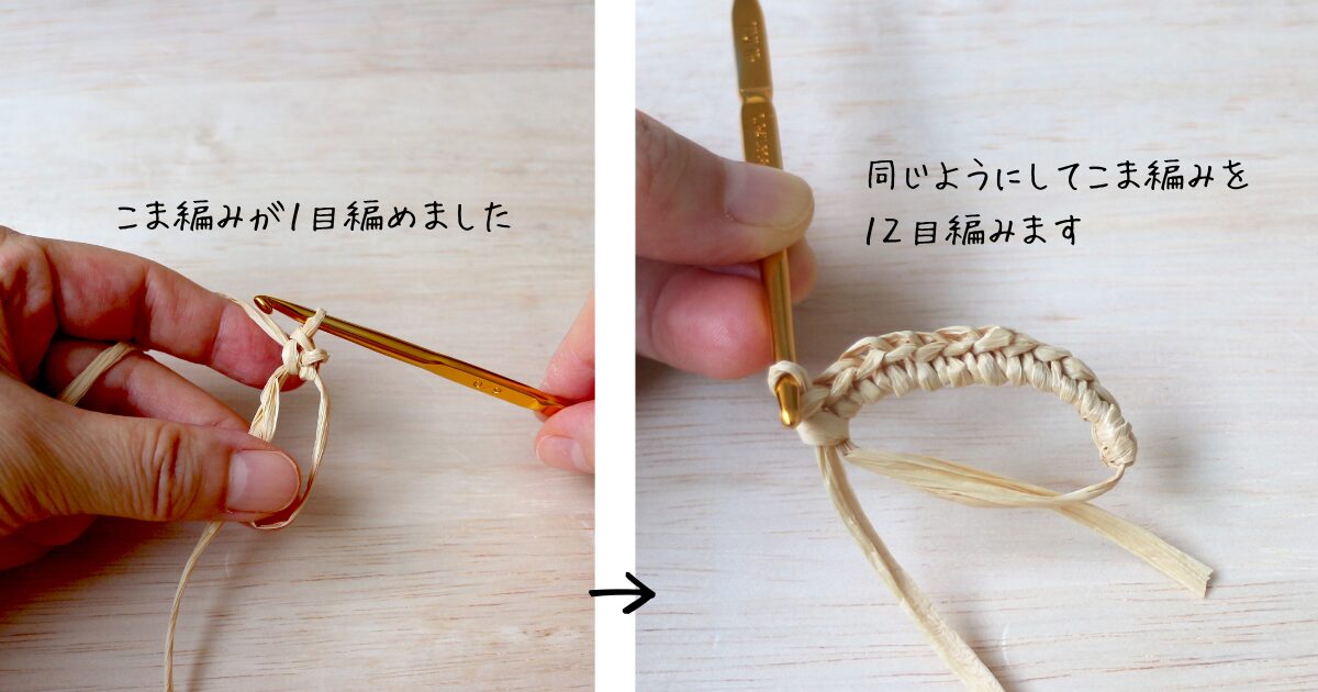 1段目:こま編み12回