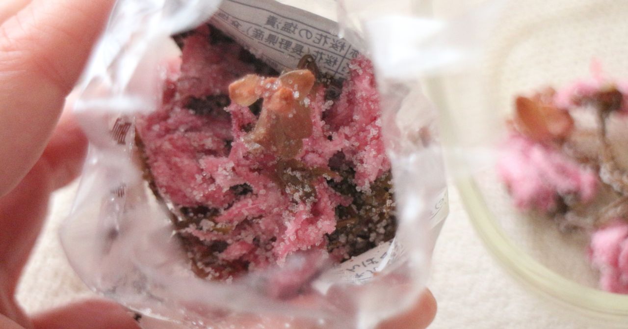 先日、近所の製菓店で桜の塩漬けを見つけて