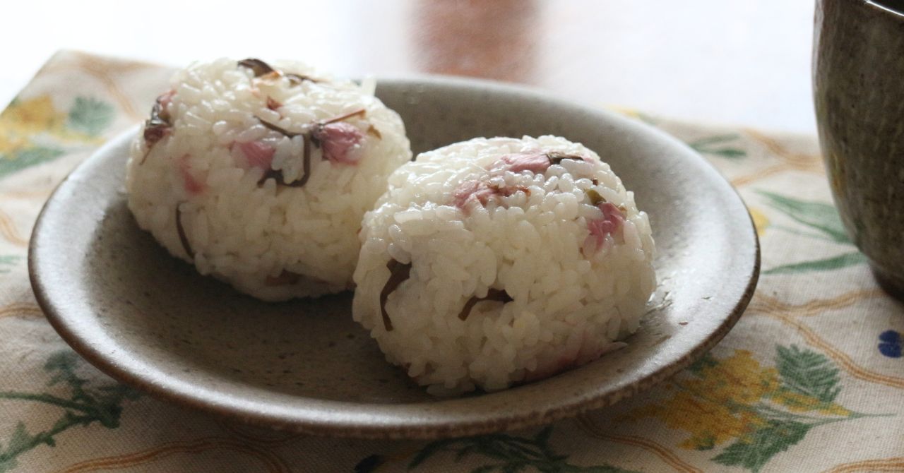 ちなみに、あまった桜の塩漬けはご飯に混ぜておにぎりにしました。