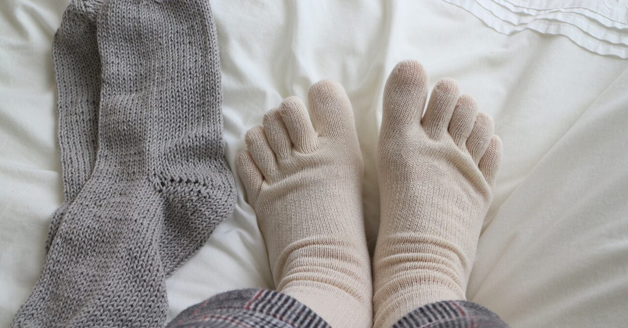 冷えとり習慣|5本指シルクソックスに手編みの靴下を重ねばき