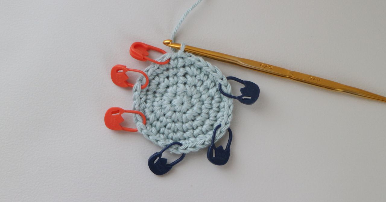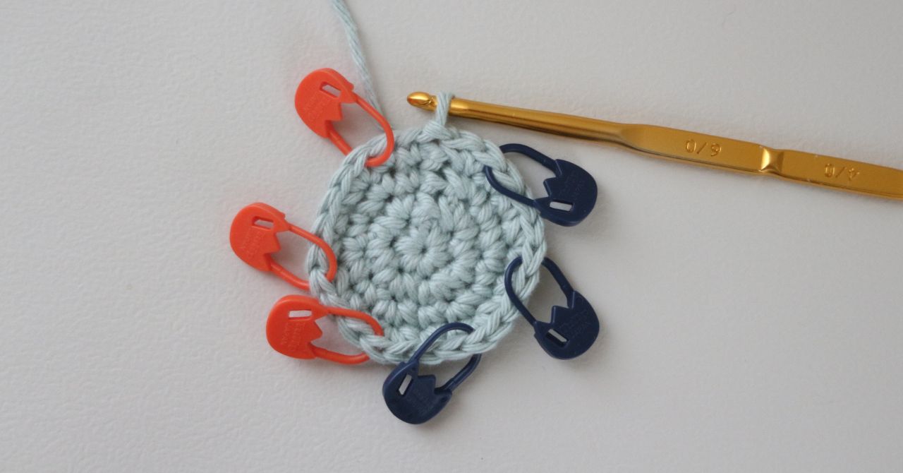 編み目マーカーの位置をずらしながら増やし目を編み、それ以外は全て細編みを編むという考え方です。